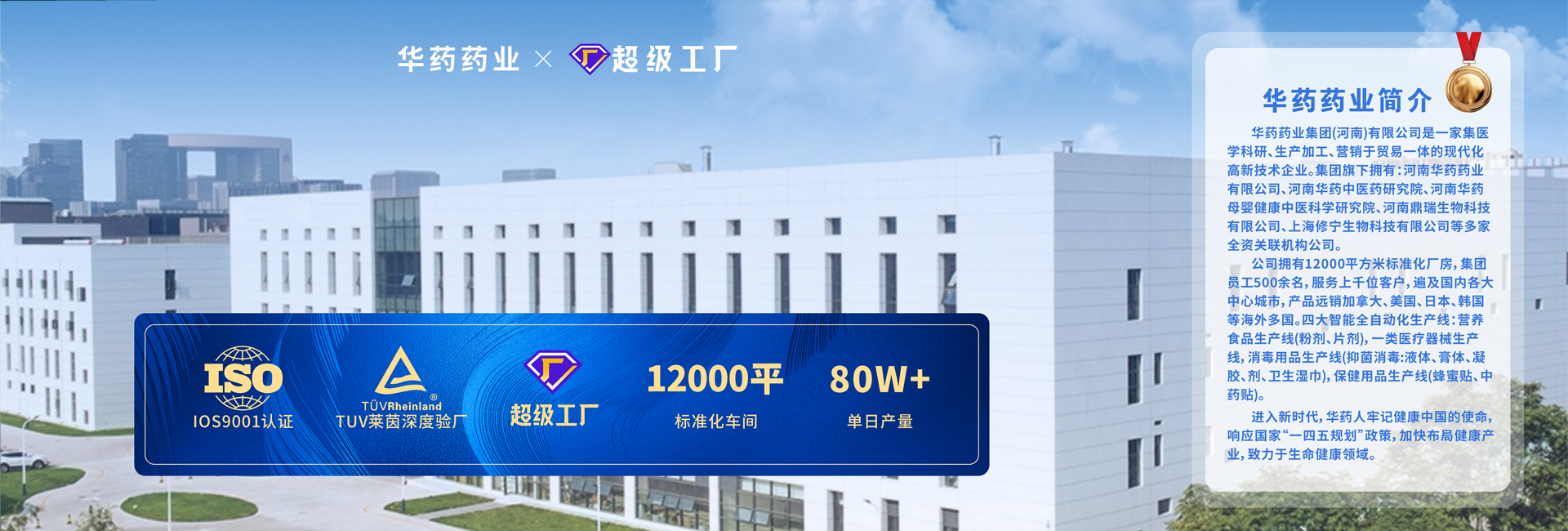 河南華藥集團是一家集研發、生產、加工、銷售于一體的現代化高新技術企業。集團旗下擁有河南華藥藥業有限公司、上海修寧生物科技有限公司、河南鼎瑞生物科技有限公司三家全資子公司。華藥集團先后創立了“華藥漢本”、“華藥帝龍”、“修寧康”、“仁和泰康”、“信爾康”、“豫醫古方”、“汐博士”、“HYHB”、“華育慧寶”等多個知名品牌。生產線涵蓋粉劑、片劑、液體、蜂蜜貼、膏藥貼劑等五大生產線。現有產品100余..···
